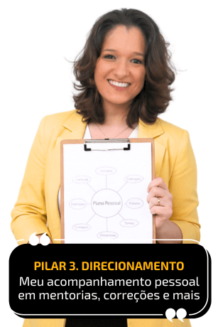 Para completar, você acessa o coração da Cúpula. Eu estarei ao seu lado em aulas ao vivo, criando conteúdos específicos, corrigindo seus textos, planejando sua evolução e garantindo que você esteja sempre no caminho certo e tendo com quem contar. É o fim da sua jornada solitária.