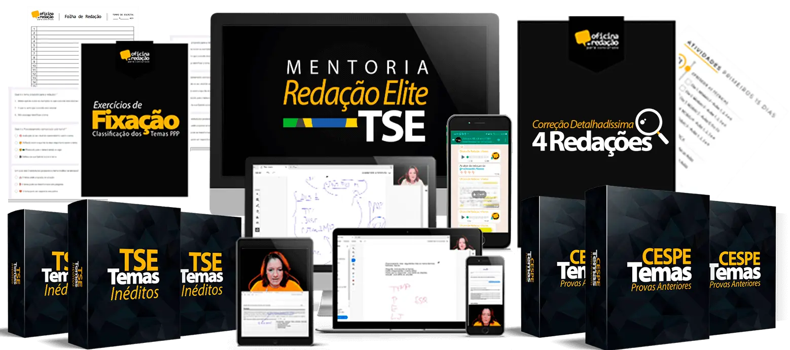 Para começar muito bem, você entenderá exatamente como o Cespe/Cebraspe formula seus temas, quais são suas características únicas, que cuidados precisa tomar para não reprovar e como escrever exatamente do jeitinho que ela gosta na redação do Concurso TSE Unificado
